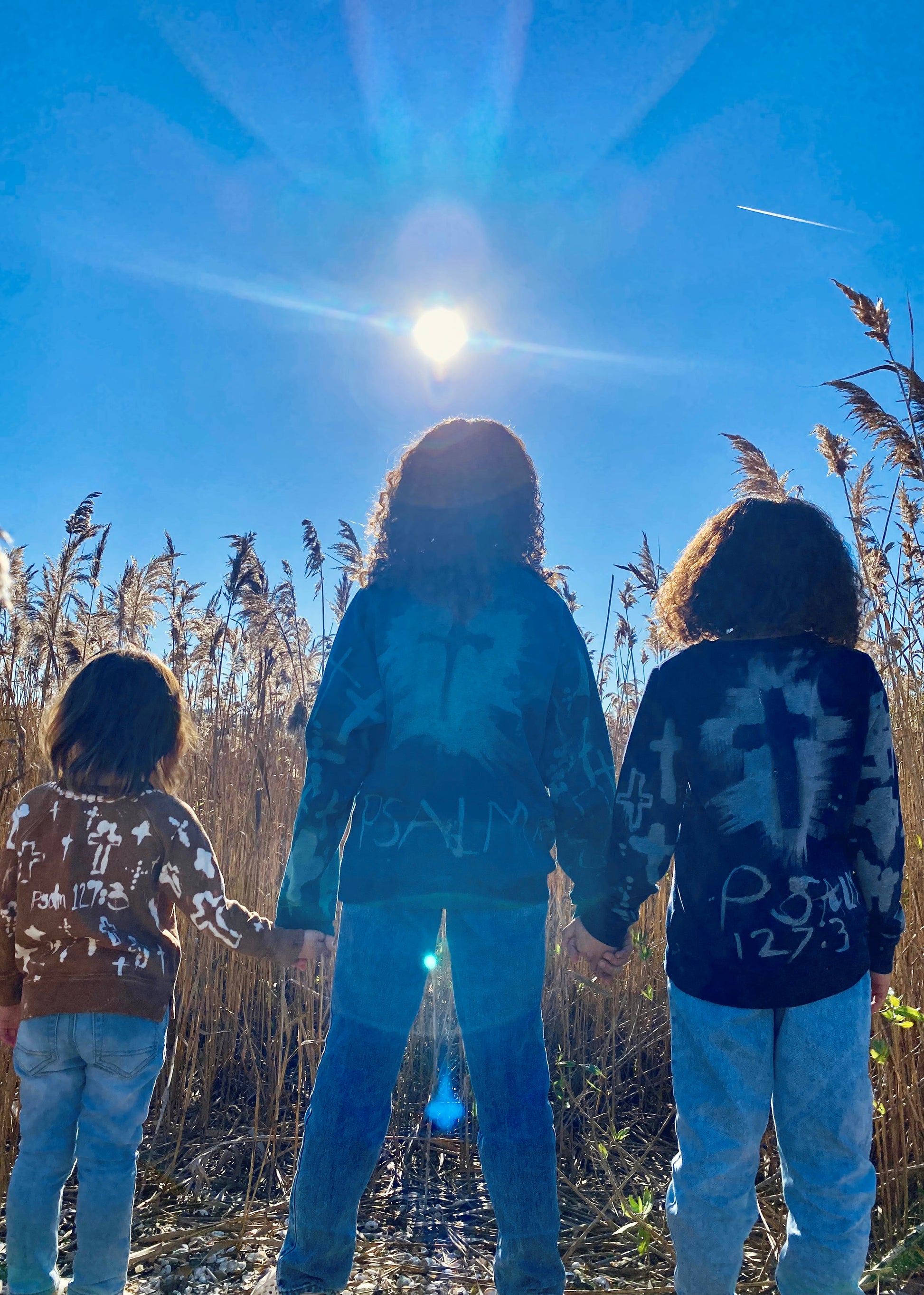 There will be one big cross on the back of crewneck with Psalm 127:3 “Children are a gift/reward from the Lord”.