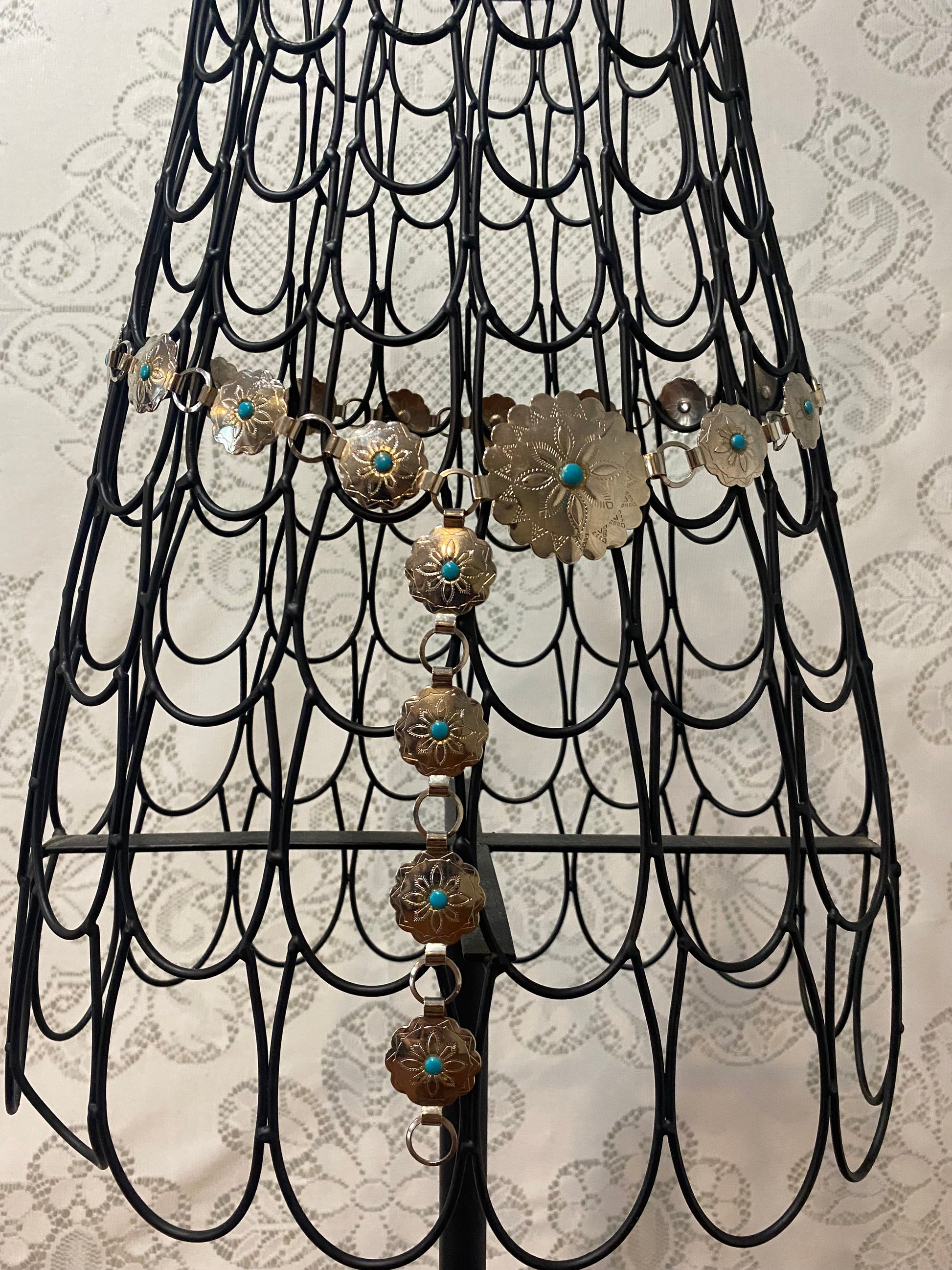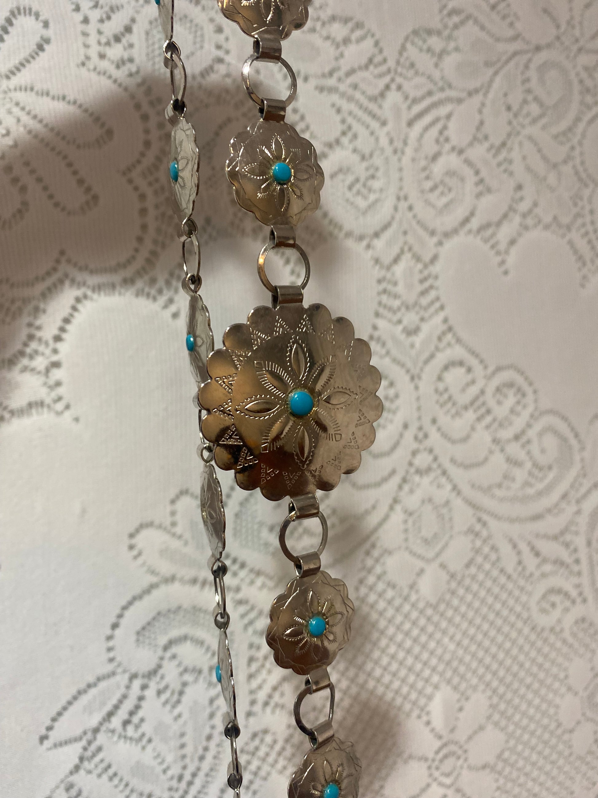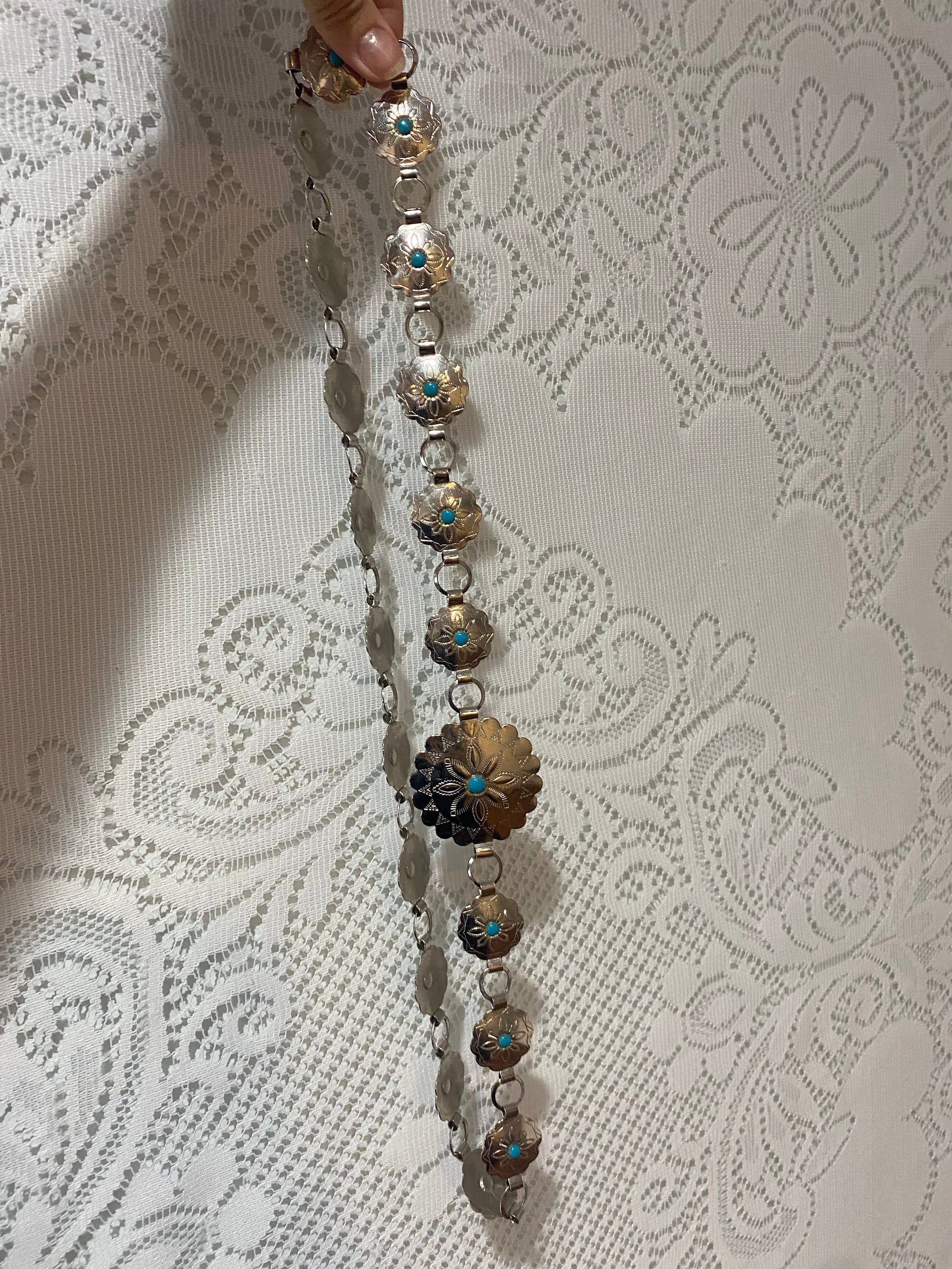 Silver & teal chain belt